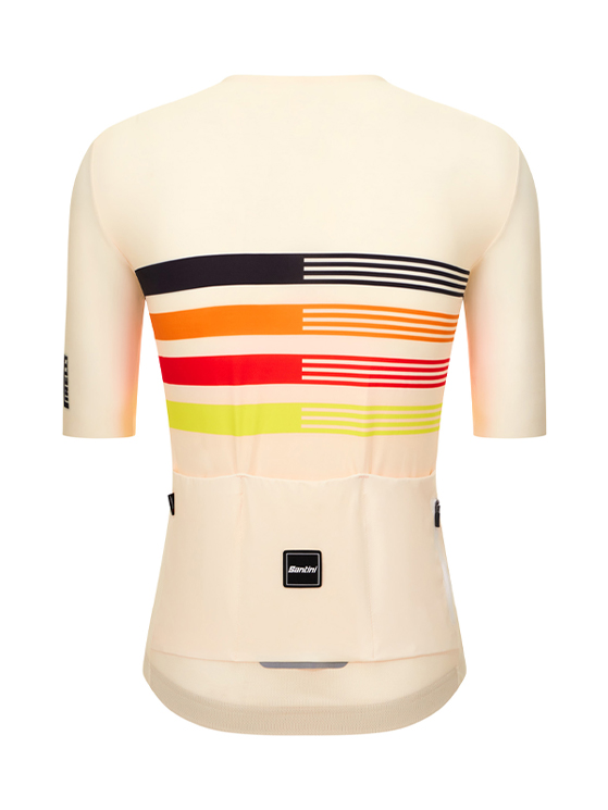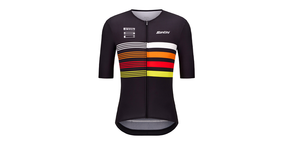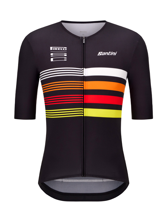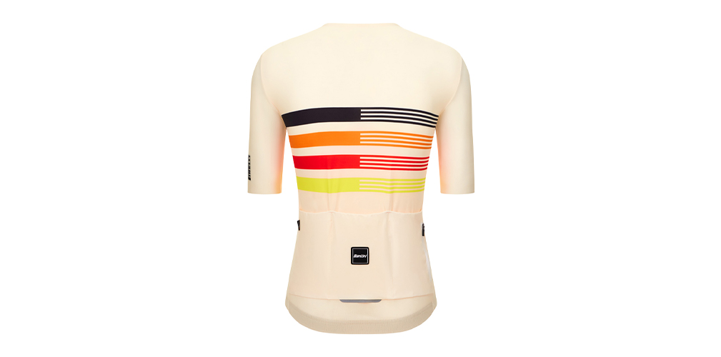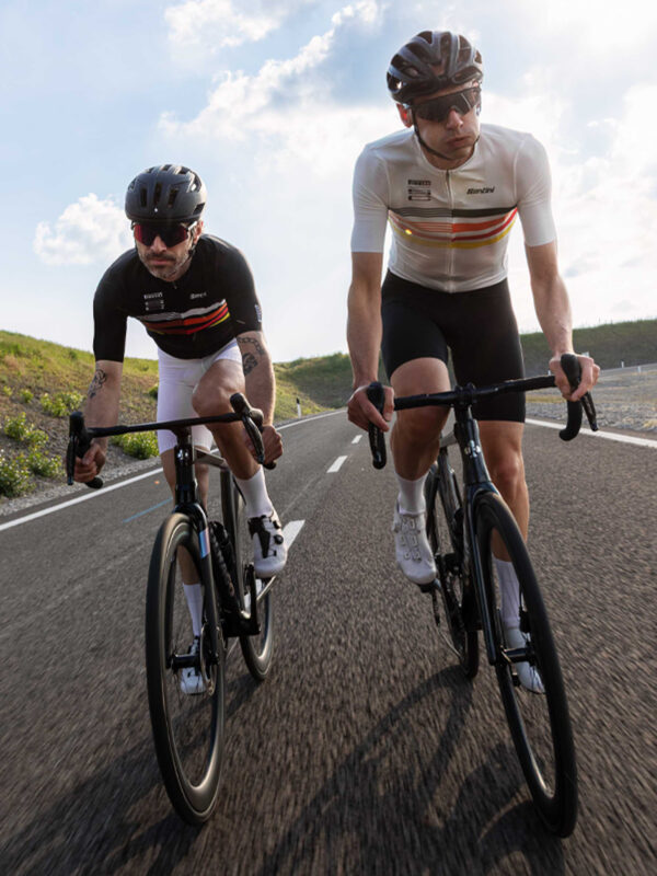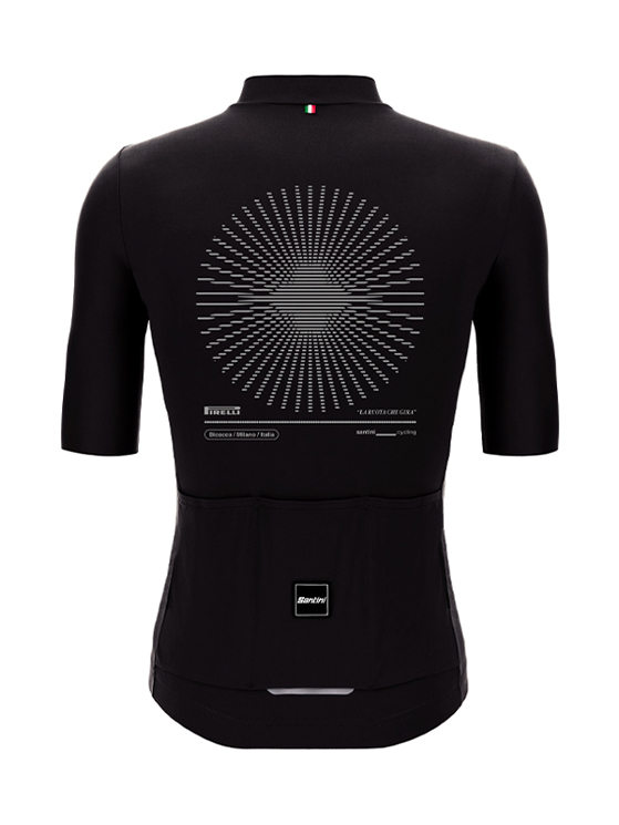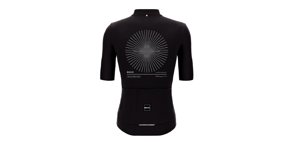 Come ogni capo realizzato da Santini non c’è solamente l’idea e il design, ma anche una solida base tecnica. Le due maglie di questa capsule collection sono realizzate con un tessuto ultra-leggero ed elastico. Questo garantisce una vestibilità slim ispirata al mondo delle corse.