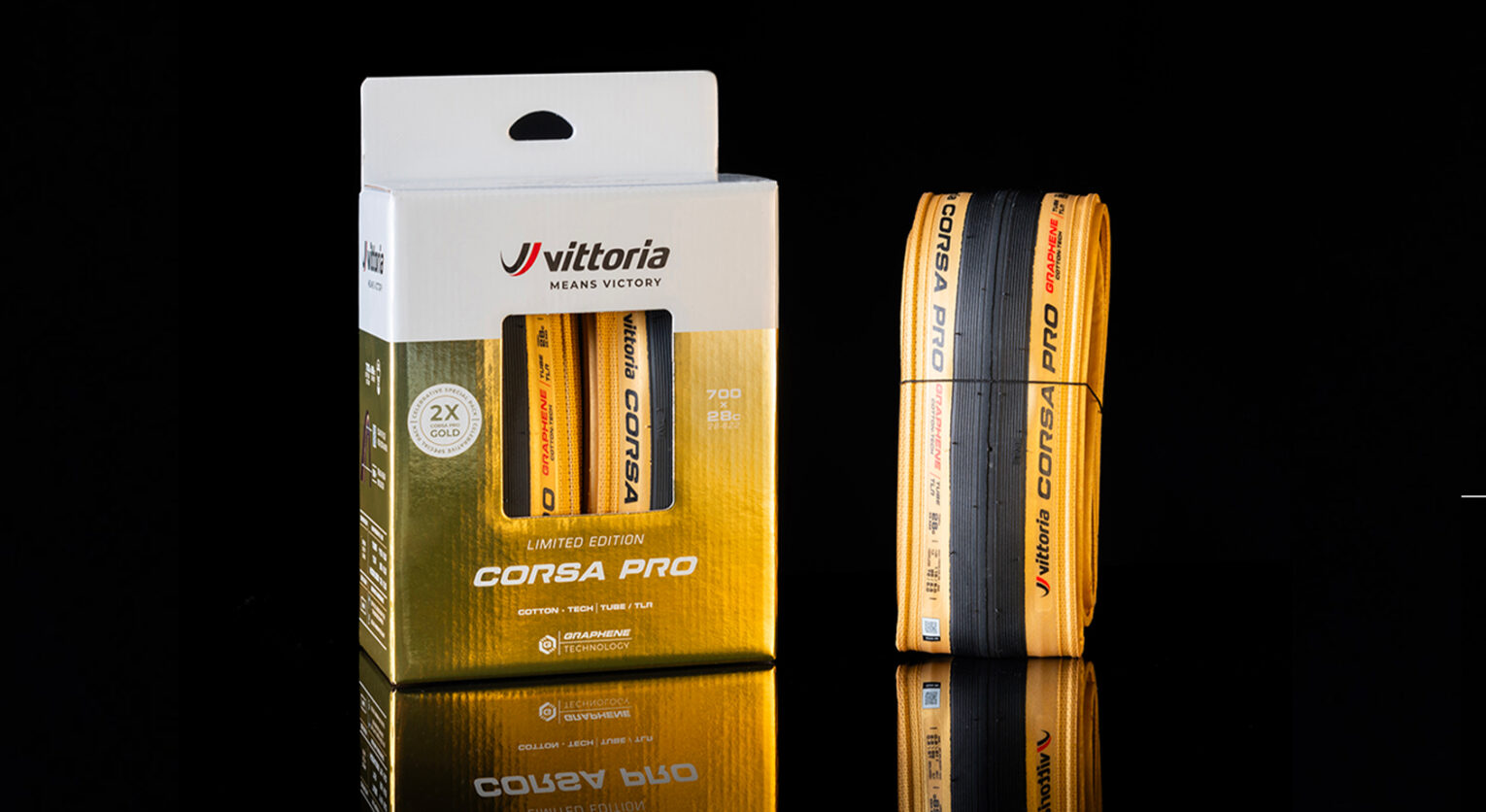 Lo abbiamo visto per tutto l’anno sulle ruote dei campioni. Ha collezionato vittorie di spessore come Milano-Sanremo, Parigi-Roubaix, Giro d’Italia, Tour de France, La Vuelta e il Campionato del Mondo su strada. Per celebrare tutti questi successi Vittoria ha realizzato il nuovo Corsa PRO Gold in edizione limitata, impreziosito da fianchi dorati. Un oggetto da collezione che sarà disponibile soltanto in 2023 confezioni in tutto il mondo, ciascuna contenente due pneumatici Corsa PRO Gold.