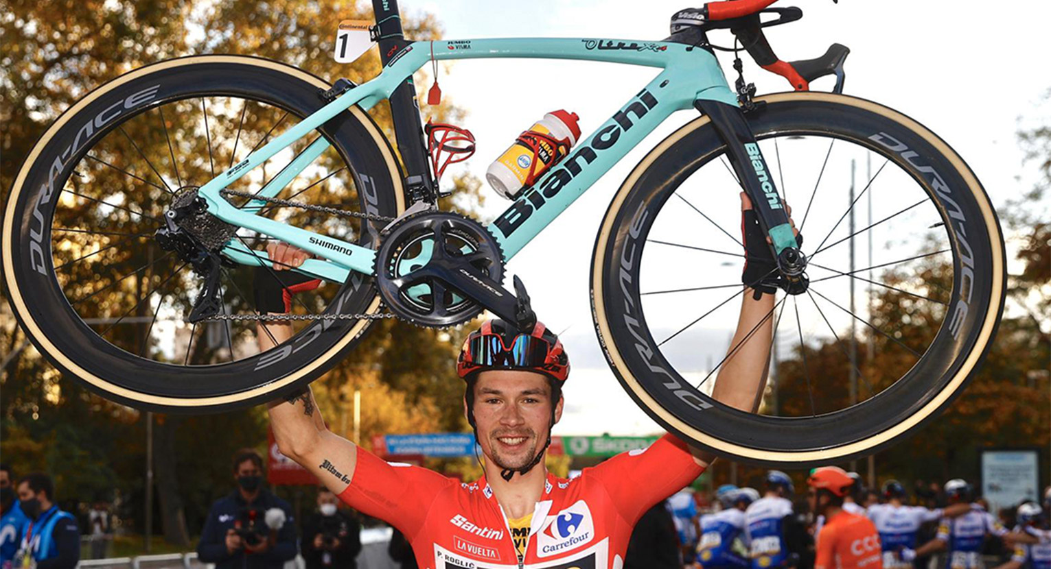 Per il secondo anno consecutivo Primoz Roglic ha vinto la Vuelta a España pedalando su biciclette Bianchi. Il marchio italiano chiude nel migliore dei modi l’esperienza con il Team Jumbo-Visma. Un punto decisivo della vittoria di Roglic è stata la cronometro corsa in sella alla Bianchi Aquila CV.