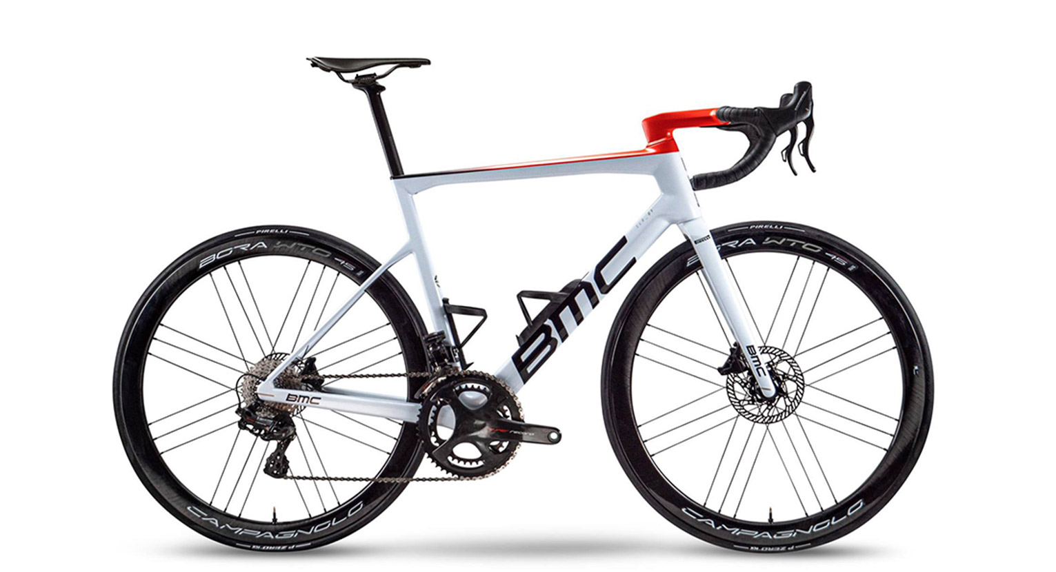 Le BMC dell’AG2R Citroen sono montate con il gruppo Campagnolo Super Record Eps, pedali Look Keo Blade Ceramic, selle Fizik, portaborraccia e borracce Elite e pneumatici Pirelli P Zero per le gare e Cinturato per gli allenamenti.