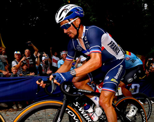 Remco ha voluto controllare la posizione. E visto che già sulla bici da crono aveva messo le pedivelle da 165, voleva vedere se adottarle anche su strada, ma alla fine ha scelto di restare con le 170, come pure Alaphilippe. Ormai le pedivelle lunghe sono sempre meno diffuse.
