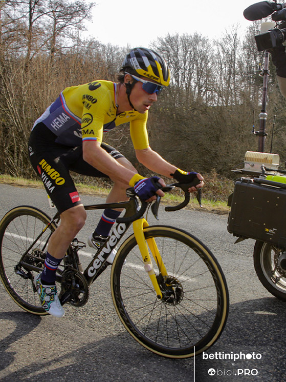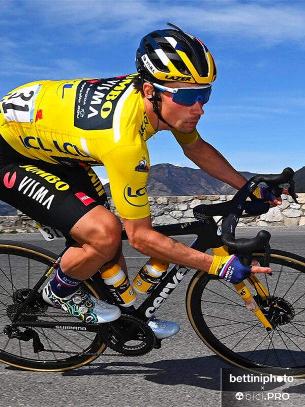 Benissimo, si può partire. La strada è tracciata. Nel 2021, come abbiamo già spiegato, Roglic e la Jumbo-Visma corrono su bici Cervélo dopo i successi negli anni su Bianchi. Su strada, lo sloveno usa la R5.