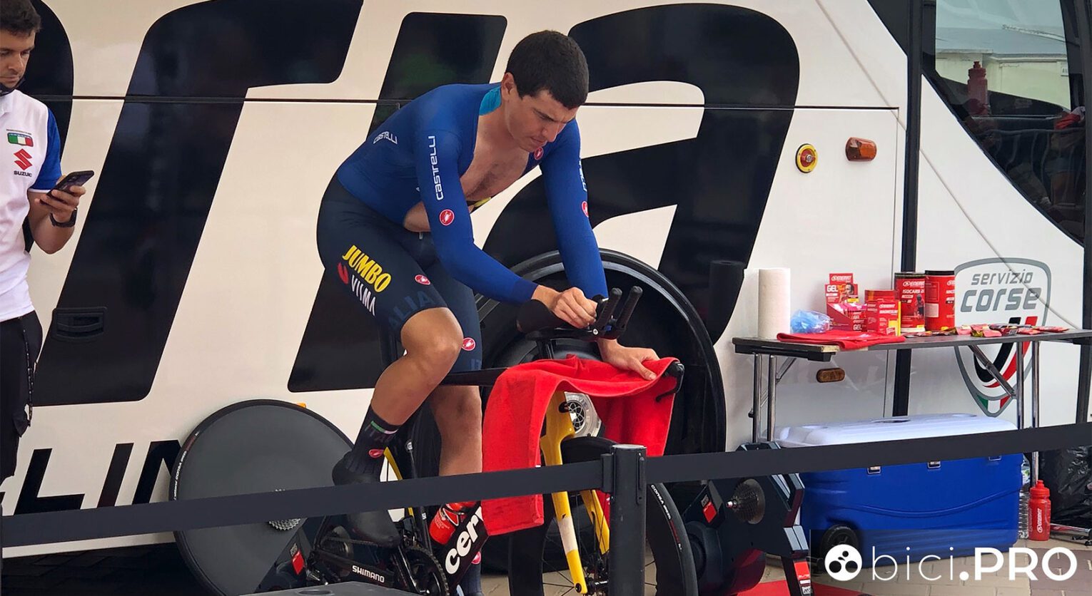 Ieri proprio poco prima del via, un tecnico della Jumbo-Visma ha dato un paio di ruote (basse con tanto di tre camere d’aria ad Affini), ruote che avrebbe portato a casa per allenarsi. E anche il settore delle gomme è in evoluzione. Pensate che solo ieri i nostri tre cronoman avevano tre tipologie differenti di gomme: Sobrero il tubolare, Ganna il copertoncino e Affini il tubeless.