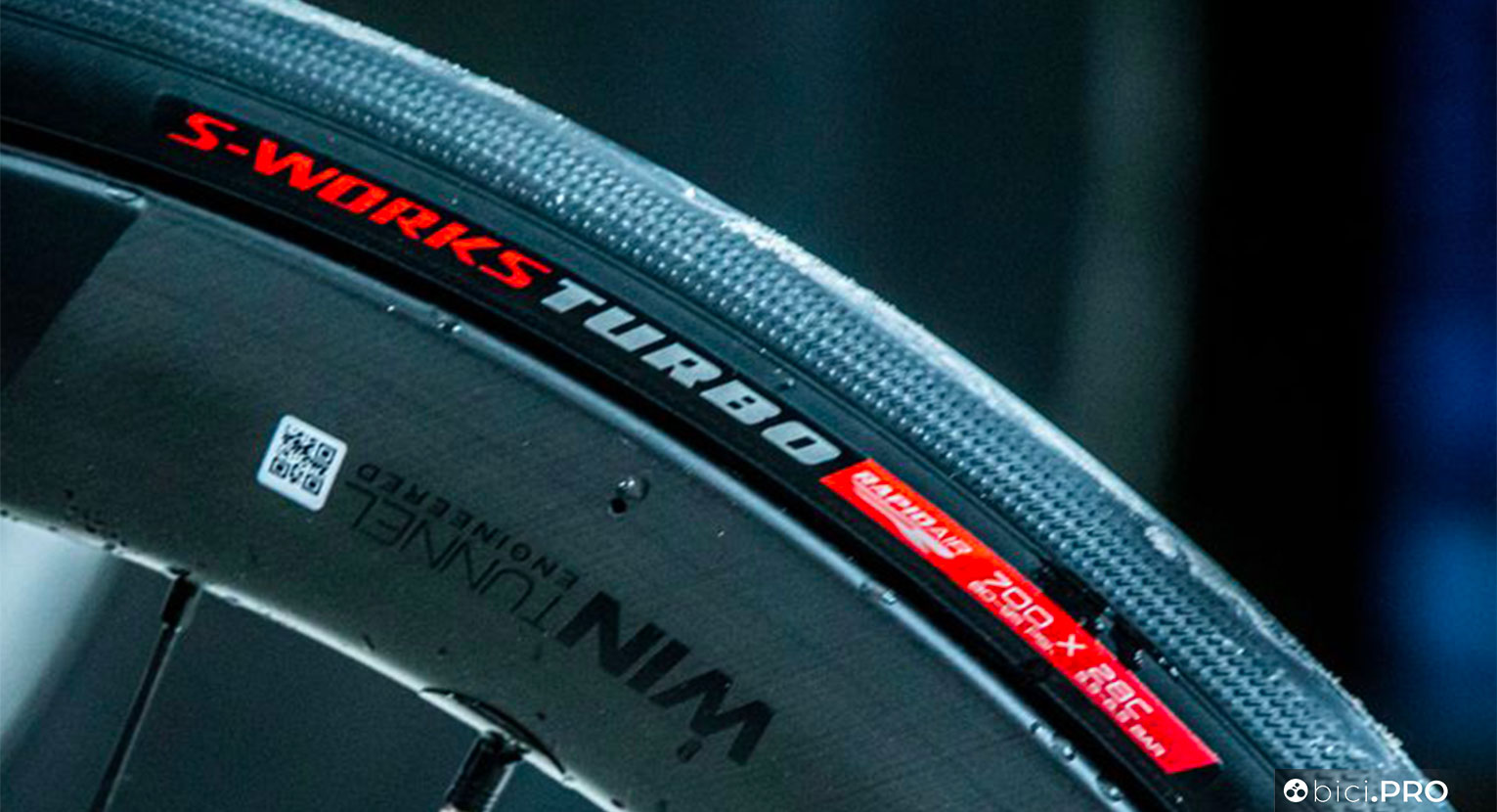 Bella domanda, dovremo fare delle ricognizioni. L’idea sul gravel, cioè sullo sterrato, è di avere una spalla più resistente, perché il sasso tende a lacerare il fianco del copertone. In quel caso il Turbo Rapid Air dovrebbe essere scelta migliore. Però bisogna veder la sezione, perché dipende da quanto il fondo sarà colloso. Si parla di argilla, per cui se è più colloso si abbassano le sezioni e magari un 26 potrebbe bastare per un corridore di 65-70 chili. Questo è il lavoro che stiamo facendo.
