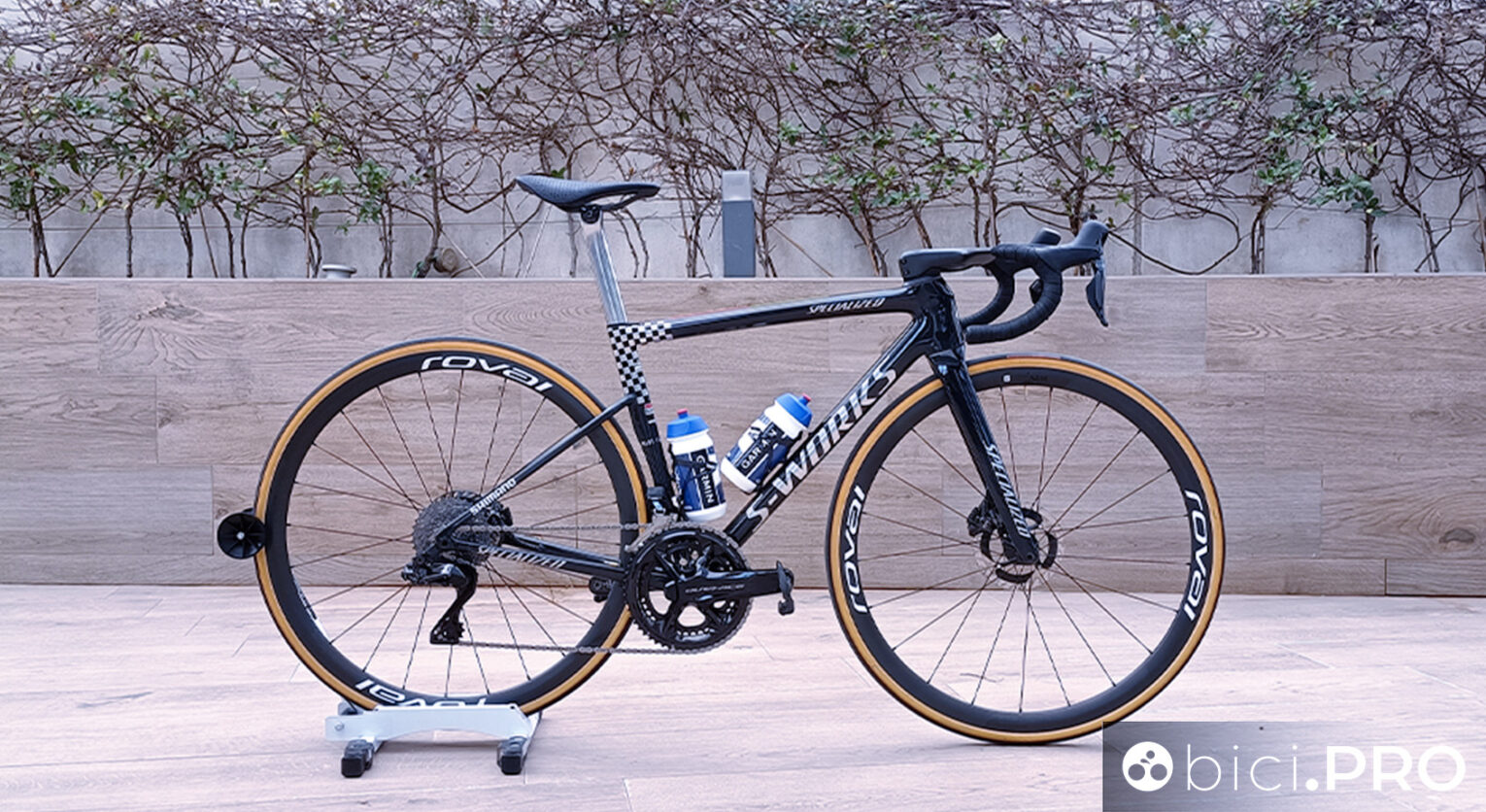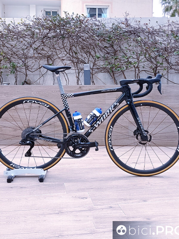 CALPE (Spagna) – Una nuova Specialized SL8 per Remco Evenepoel e i suoi compagni chiaramente. Ma quella del belga ha una colorazione speciale, con quella bandiera a scacchi che tanto richiama alla velocità di Remco e al suo modo di correre all’attacco. E non mancano i colori del Belgio, di cui è campione in carica.