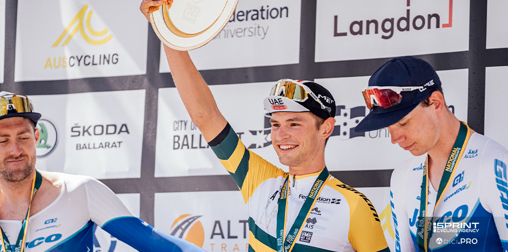 Jay Vine è il nuovo campione australiano a cronometro (immagine di apertura AusCycling). Non sorprende la sua vittoria, quanto il fatto che abbia dominato su una bicicletta e in una disciplina in cui non si inventa nulla. Ricordando che è passato professionista solo nel 2021, dopo un anno in continental e approdando al massimo livello con la Alpecin-Deceuninck per aver vinto la Zwift Academy.