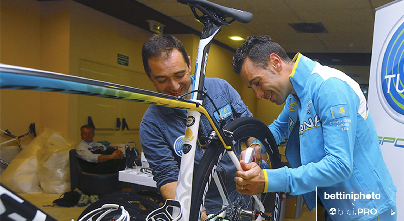 Ah – ride il “Toso” – Giro d’Italia 2013. Prima della cronoscalata di Polsa, c’erano da montare le protesi sul manubrio normale. Si mise in testa di cambiare l’attacco. Ne volle uno più corto, da 100 millimetri. Glielo cambio e fa la sua crono. Il giorno dopo la tappa era partita da un bel po’, quando per radio mi fa: «Ma ci siamo dimenticati qualcosa?». Io aspettavo che lui mi dicesse di rimontare l’attacco da 120. E lui aspettava che lo facessi io. Fatto sta che fece tutta la tappa con un attacco più corto di 2 centimetri! A fine tappa disse: «Credevo di essere io che non mi sentivo bene sulla bici. Poi ho capito che era l’attacco». Comunque non andò male. Disse che se la sentiva un po’ corta solo in discesa. Ma a quei tempi gli potevi mettere sotto di tutto: lui guidava e basta.