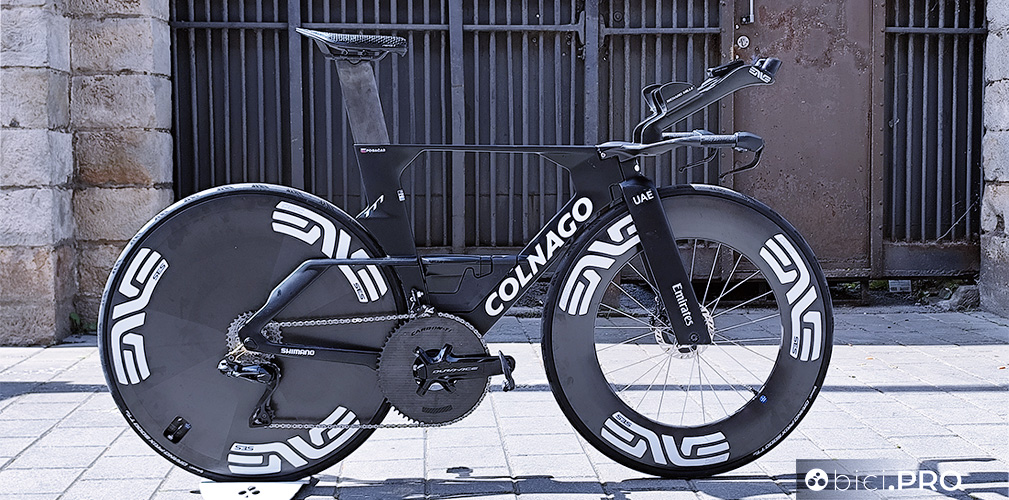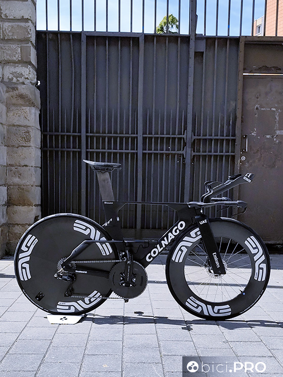 Infine ecco la bici da crono, la Colnago TT1, che Pogacar userà tra pochi giorni a Caen, quando il Tour proporrà la tappa contro il tempo.