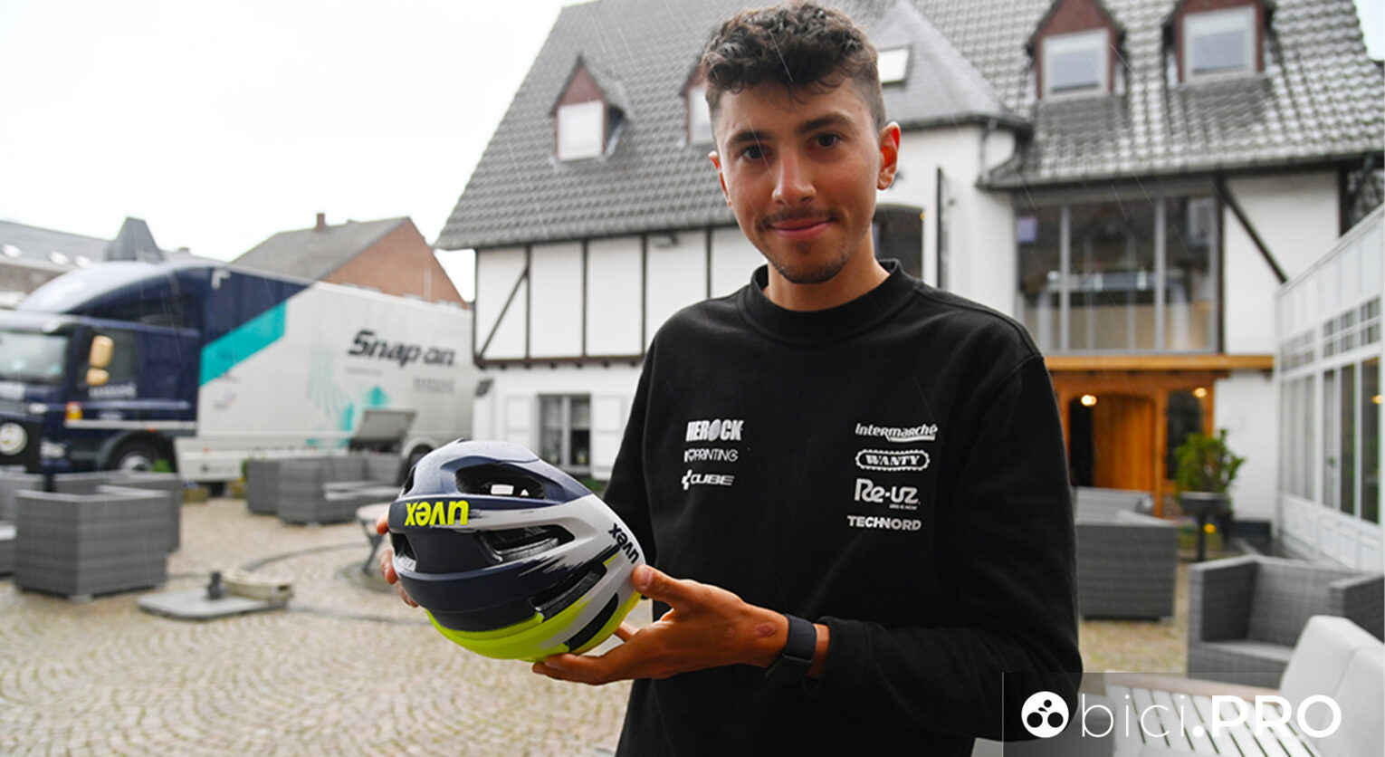 Il bergamasco è approdato quest’anno alla squadra belga dove, oltre a tutto il resto, ha ricevuto in dotazione il casco Uvex Rise Pro Mips. I suoi compagni che già c’erano – fra loro anche gli italiani Rota, Petilli e Busatto – lo avevano già ricevuto la scorsa estate, dato che per il debutto il marchio tedesco ha scelto il Tour de France 2023.