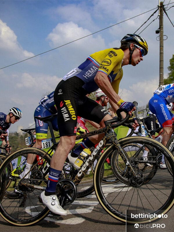 Con quale bici ha corso Primoz Roglic alla Freccia Vallone? La sua Cervélo R5, a prescindere dalla colorazione nero antracite con filamenti gialli, ci ha subito colpito.