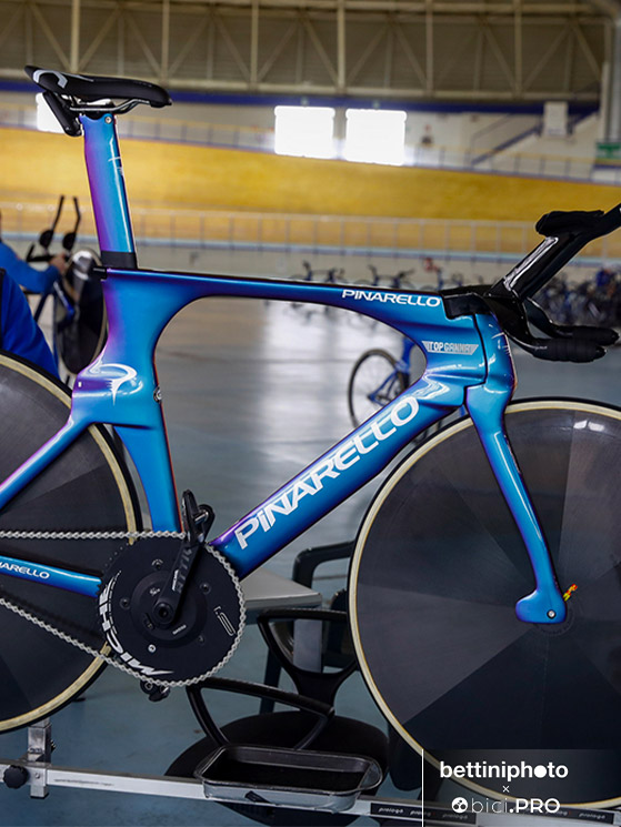 Le bici quindi avevano telaio Pinarello, manubrio Most sempre di matrice Pinarello ma realizzato in collaborazione con Hardskin, movimenti CeramicSpeed, ruote Campagnolo e gruppo Miche.