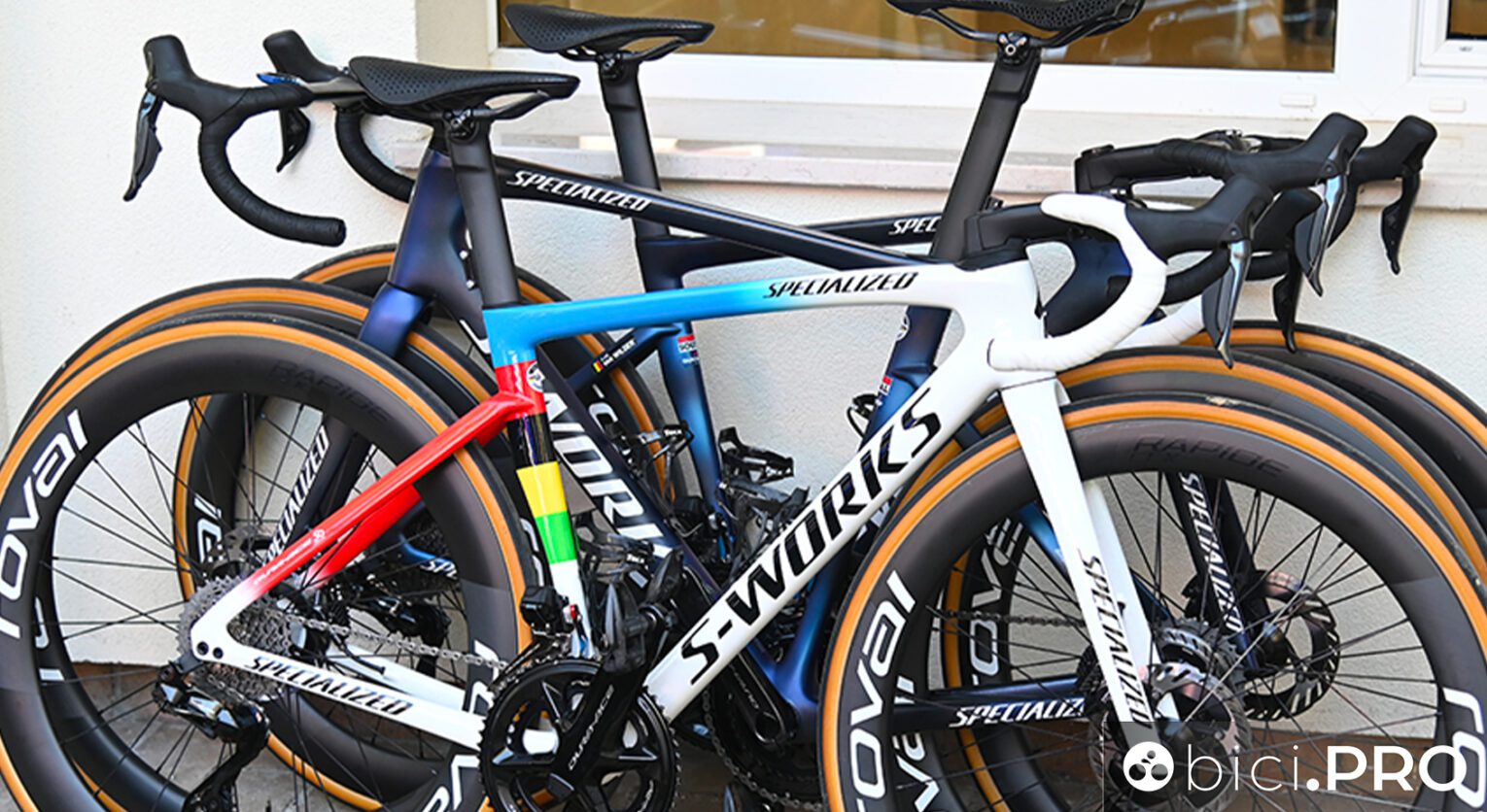 Soprattutto quelle del leader sono sempre due più degli altri. Comprese le 8 che corrono, abbiamo 25 bici da corsa e 17 da crono. Per quello che invece riguarda le ruote, il numero è sempre quello, perché ne servono sempre tante. E considerando tutti i profili a disposizione, il numero è notevole. Abbiamo 50 coppie di ruote da strada, più 25 da crono.
