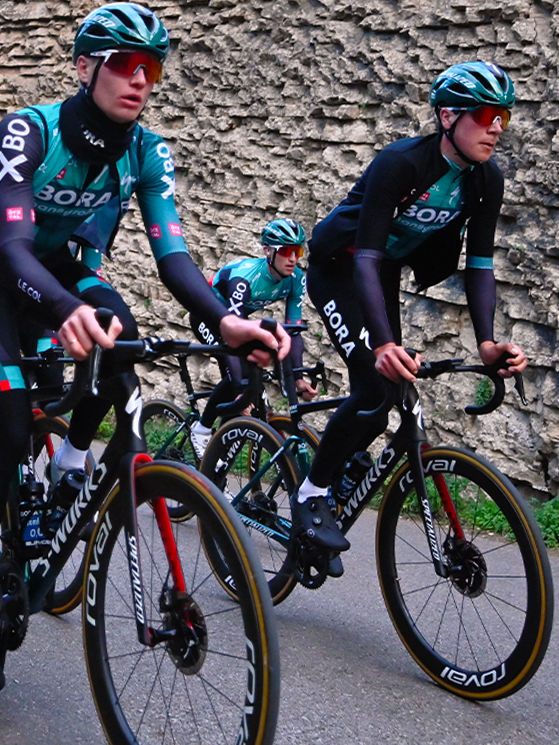 Indicativamente forniamo 2 set di ruote training ad ogni corridore, 3 set di ruote leggere e 3 set di aerodinamiche. Poi ovviamente è da considerare l’organizzazione di ogni singolo team. Sulla fornitura dei materiali c’è sempre da considerare se la collaborazione è attiva da più stagioni. In un certo senso la storicità del rapporto ha un peso in fatto di numeri e fornitura e ci sono più variabili da considerare.