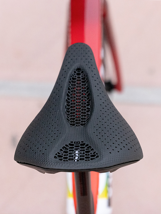 Potrei dirti che oggi si dividono nel 50% che usa la sella corta Power e l’altro 50% che utilizza la sella standard, ovvero la Romin. In entrambi i casi i corridori apprezzano le versioni Mirror in 3D.