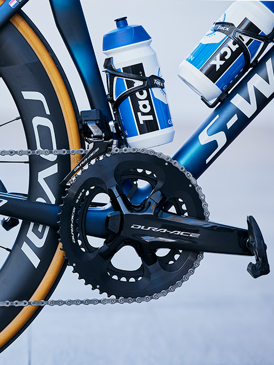 Roval non ha più in gamma le ruote con cerchio da tubolare, questo anche per i pro’, ai quali forniamo le Alpinist e le Rapide per gareggiare. Tutti i team adottano i copertoncini ed i tubeless. Le Rapide Tubeless sono state fornite per la stagione entrante. Per il manubrio e per il cockpit in generale: noi forniamo il nostro kit e si dà merito anche alle eventuali sponsorizzazioni. Vedi ad esempio la Quick Step con Pro Bike Gear.
