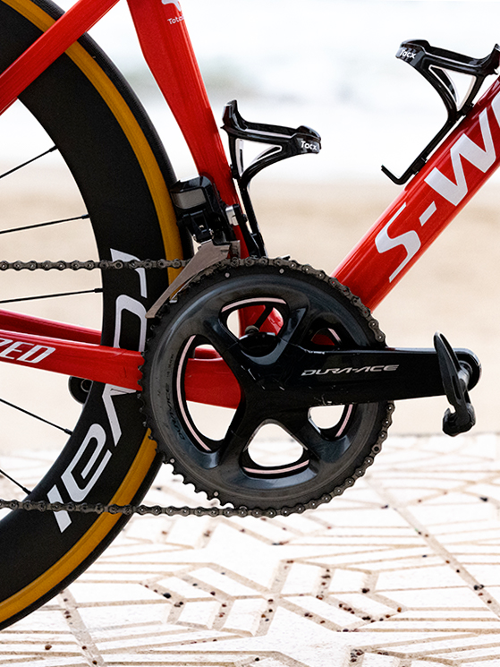 Possiamo fare una media considerando le tre squadre uomini. Per ogni corridore vengono calcolati: 5 frame-kit S-Works Tarmac SL7 e 2 modelli Shiv da crono. A queste si aggiunge una S-Works Roubaix. Quest’ultimo modello non viene fornito a tutti, dipende anche dagli obiettivi del corridore».