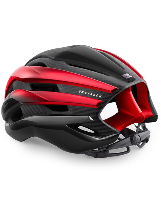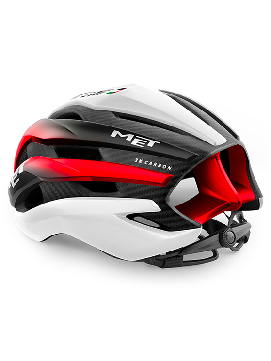 Un casco leggero dal peso di 229 grammi che presenta ben 19 prese d’aria. Il sistema di sicurezza è garantito dalla protezione Mips-C2 che riesce a disperdere le forze rotazionali causate dall’impatto dovuto ad un eventuale caduta. Grazie alla tecnologia 3K Carbon i tecnici Met hanno rilevato che il modulo elastico del carbonio permette di ridurre la densità della schiuma di EPS (polistirene espanso) di circa il 20%, mantenendo un’ottima stabilità nella resistenza agli urti. Il risultato ottenuto è una calotta più leggera e performante.