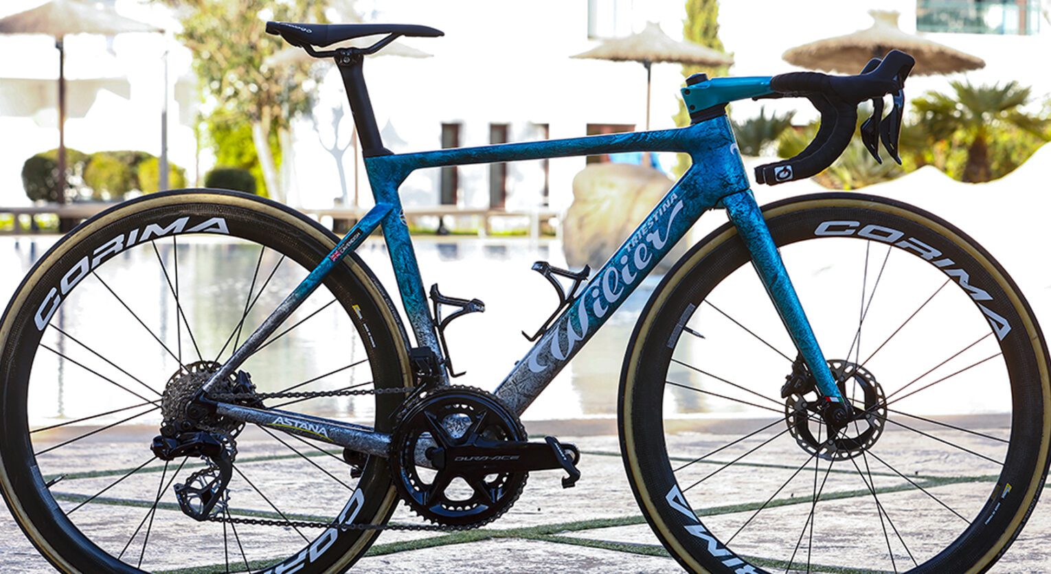 Si nota la nuova livrea “marmorizzata” delle nuove Wilier (foto Team Astana-Wilier)