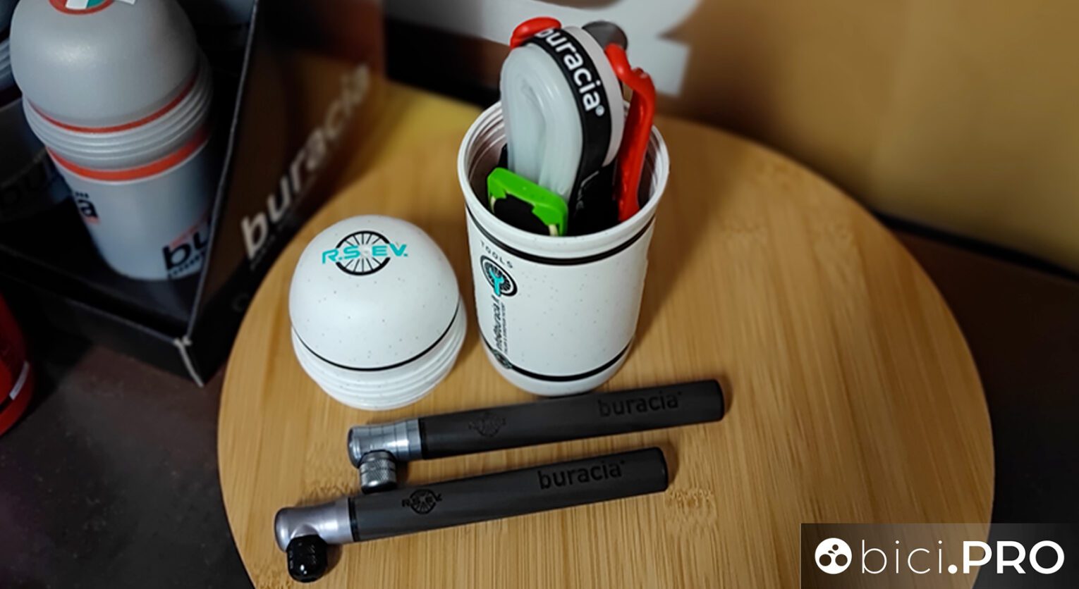 Il ciclista e il peso della sua bicicletta: una sfida che nasce dal passato e che è destinata a continuare. Il risparmio dei grammi è uno degli obiettivi principali di chi pedala e coinvolge anche gli accessori. Può una pompetta di emergenza essere superleggera e nonostante ciò anche efficace? La risposta è sì, perché la mini-pompa in carbonio di Buracia ha un valore alla bilancia di soli 55 grammi e spinge anche forte.