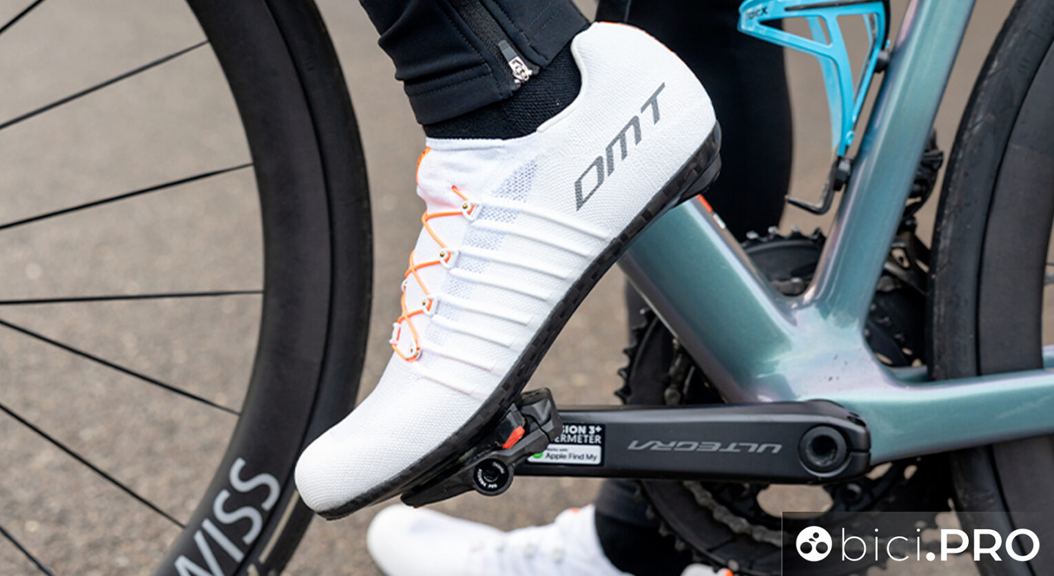 Le scarpe chieste a gran voce, disegnate, sviluppate con e per Pogacar? Ma non è solo questo. Che piacciano oppure no, capaci di accontentare la gratificazione soggettiva del ciclista oppure no, le DMT Pogi’s Superlight sono un esercizio di stile e di capacità di far coesistere tecnologia e comfort. Una volta indossate, preparate e “tacchettate”, bè… tanta roba. Le abbiamo provate.