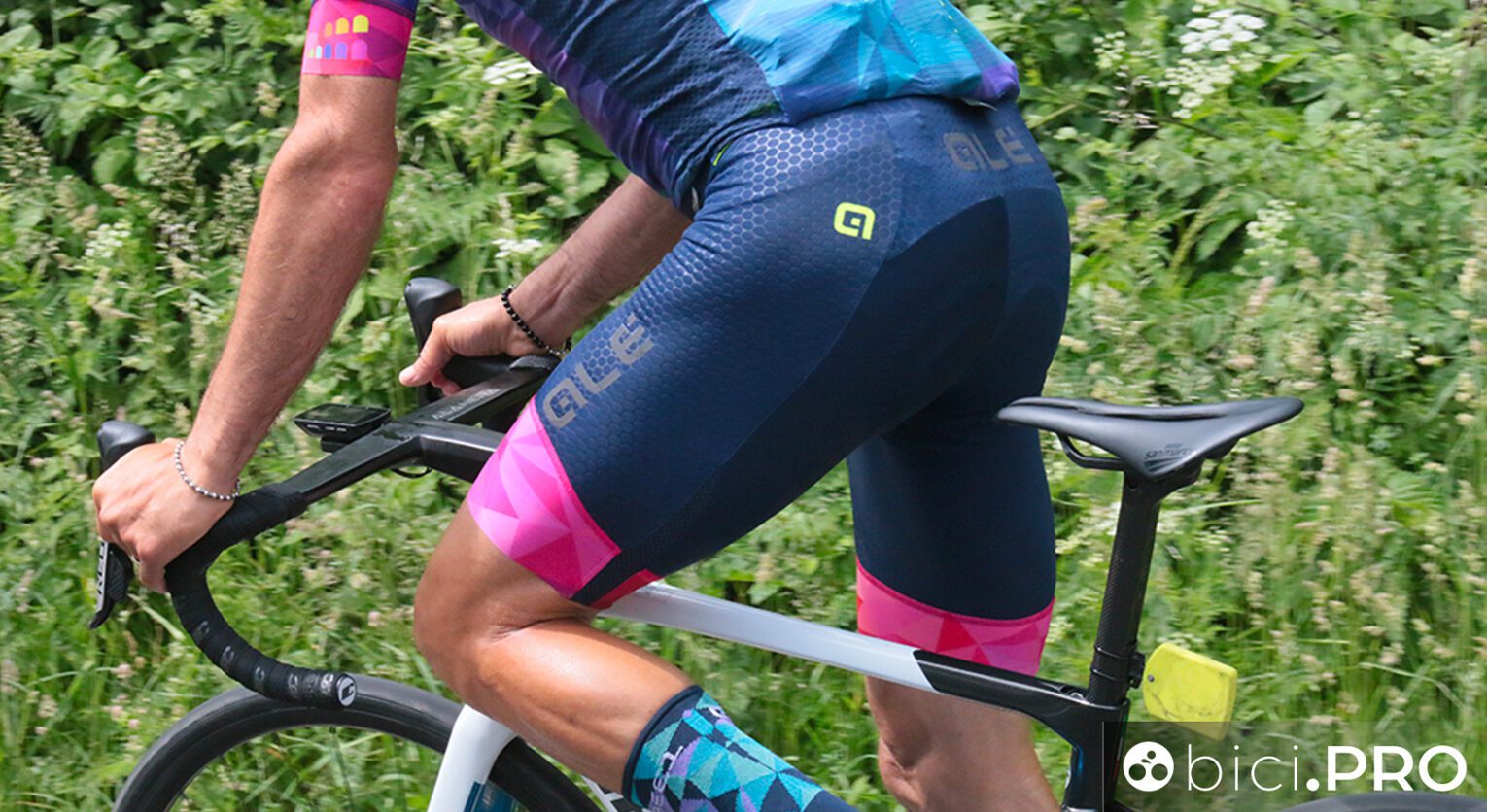 Le bretelle sono ben strutturate e compatte e non creano frizioni. Hanno un’incrocio semplificato nella sezione posteriore, senza la rete di supporto e ulteriori tessuti in aggiunta, soluzione voluta per limitare l’accumulo di sudore e umidità. Nonostante la loro semplicità, le bretelle sono un esempio di stabilità, anche dopo diverse ore di attività. Il fondello è della famiglia 4H, sviluppato e prodotto interamente da Alé, sempre una garanzia in fatto di comfort e giusto supporto.