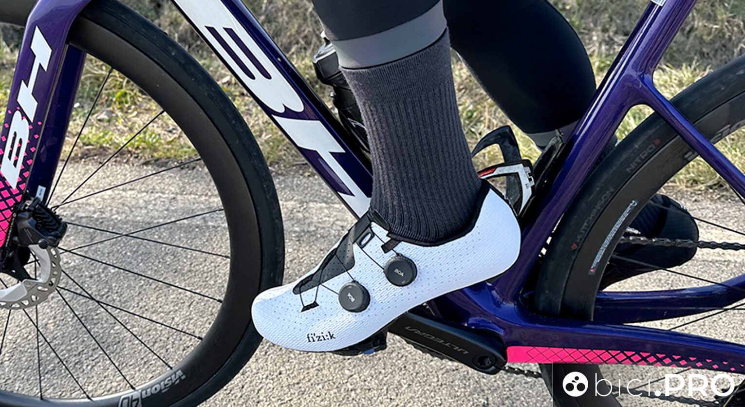Le abbiamo provate. Non ci siamo limitati al test, ma abbiamo chiesto ad Alex Locatelli, Product Manager di Fizik, per sapere dove nasce l’idea di una scarpa al top del catalogo, ma over standard.