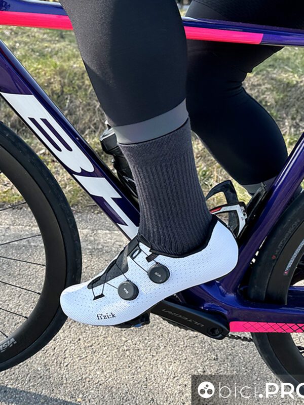 Considerando una categoria, quella degli stradisti che è molto conservatrice e poco incline alle innovazioni, mi ha colpito il fatto che gli atleti che hanno provato la Fizik Stabilita non sono più tornati sulla calzatura standard. I riscontri si sono concentrati sul supporto anche del tendine d’Achille e del ginocchio.