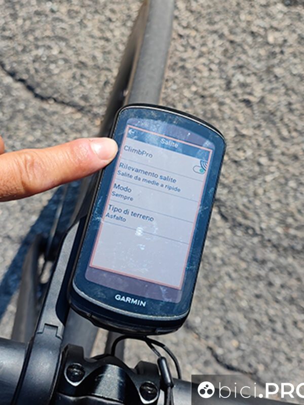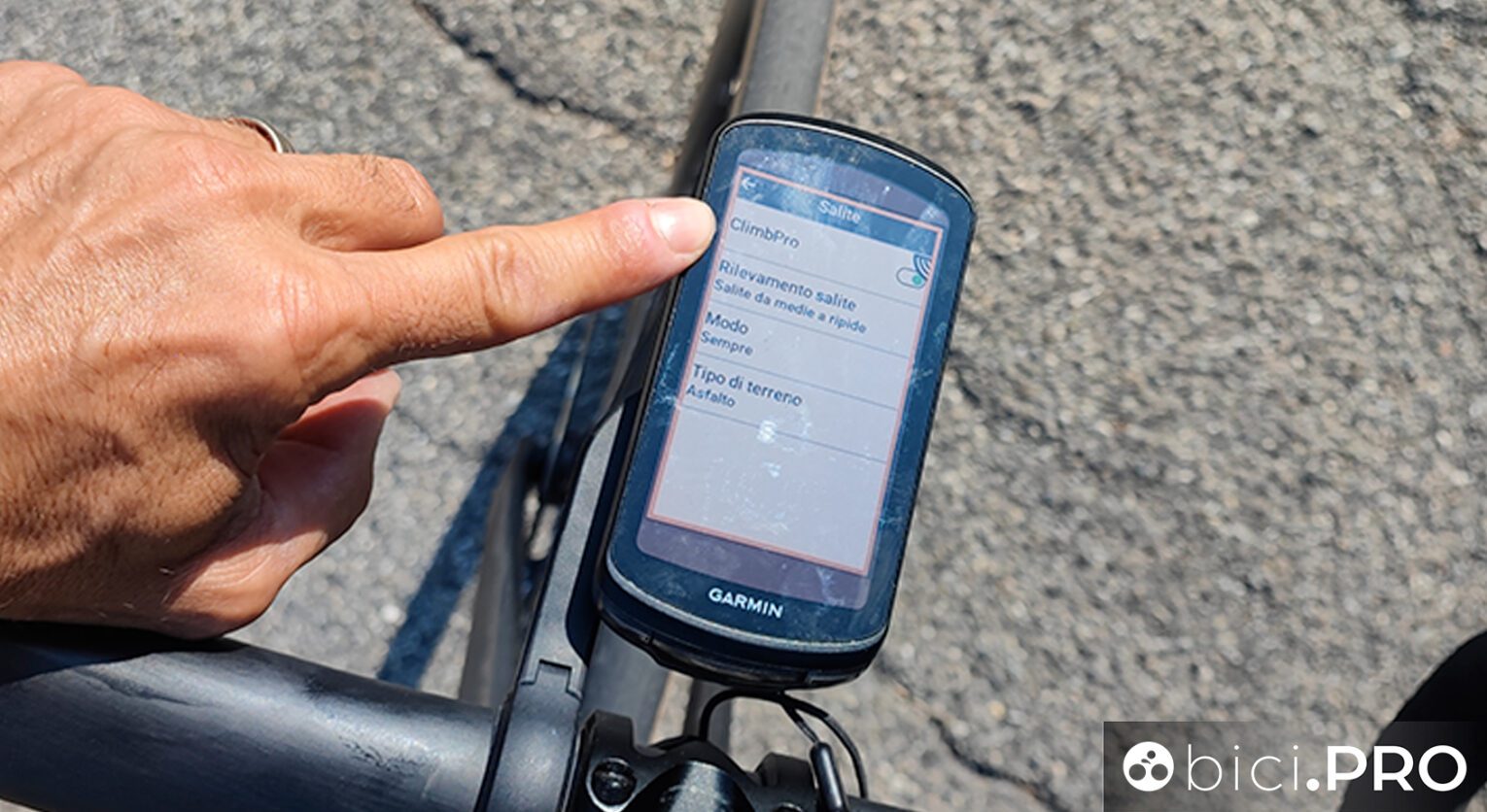 E’ una funzione disponibile per la famiglia Garmin Edge e che permette all’utilizzatore di essere aggiornato, in tempo reale, in merito al profilo altimetrico della salita. La schermata principale è una (personalizzabile in alcuni campi), ma di fatto la funzione ClimbPro di Garmin include anche il riepilogo delle salite percorse in precedenza e anche una sorta di avviso di entrata nel segmento.