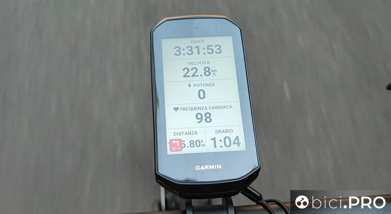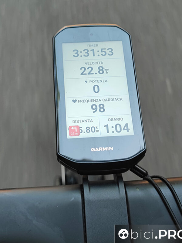 Ci piace sottolineare questo aspetto tecnico del nuovo dispositivo. In un mondo che corre sempre di più e spesso dimentica le cose più semplici (talvolta sono anche le più immediate), la differenziazione tramite i colori aumenta (non poco) l’intuitività e il concetto di immediatezza. Nonostante l’alta definizione (la luminosità può essere regolata a piacere) il consumo della batteria è comunque ridotto, circa l’8% ogni ora (GPS al massimo delle potenzialità, power meter e fascia cardio, sensore della velocità e luminosità al massimo, bluetooth attivato con smartphone associato).