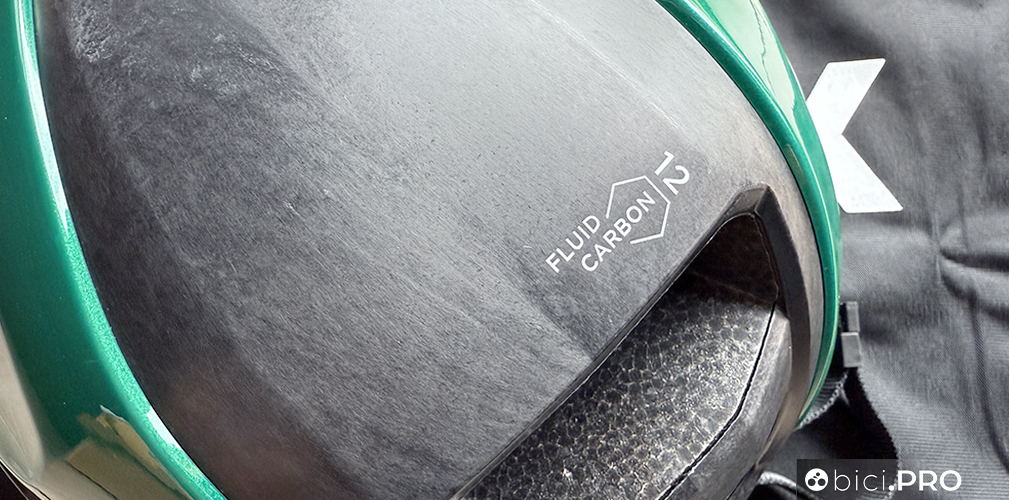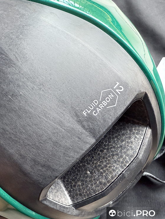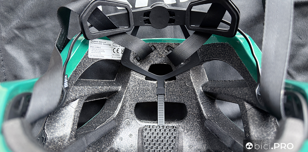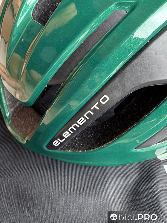 La prima cosa da raccontare, uno dei punti chiave di Kask Elemento, sono gli inserti Fluid Carbon 12, inseriti in punti diversi. Fluid Carbon 12 è un tecno-polimero composito che assorbe e distribuisce energia in modo maggiore, rispetto ai materiali tradizionali. Grazie a questo, Elemento risulta molto scaricato in tutta la sezione interna, leggero e con canali interni di ventilazione davvero grandi, profondi e senza ostacoli. L’aria passa internamente in modo abbondante (e si sente) anche quando la velocità non è elevata. I punti di appoggio sulla testa sono solo quelli necessari alla stabilità e alla sicurezza. A nostro parere una bella espressione di tecnica, di studio e di connessione tra materiali diversi tra loro.