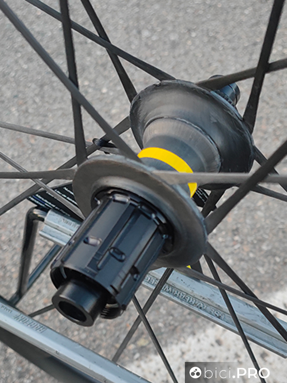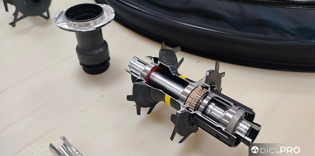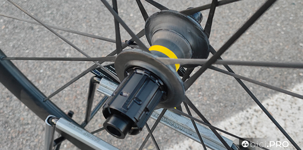 Proprio così, i due mozzi hanno lo scheletro in alluminio 2014 T6 e sono rivestiti (a mano) con la fibra di carbonio. Questo procedimento è voluto per garantire una resistenza senza pari alle torsioni e per garantire il perfetto posizionamento dei cuscinetti interni. Il cuore del sistema interno si basa sull’Infinity Hub.