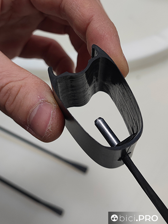 Si innestano nel cerchio grazie alla soluzione Fore Carbon. Quest’ultima si basa su un nipplo (e la sua base di appoggio) in CNC che trattiene il raggio, tecnologia che non altera le proprietà della fibra, che non viene interrotta. Per dare un’idea, un raggio con i rispettivi due nipples è in grado di rare un’automobile.
