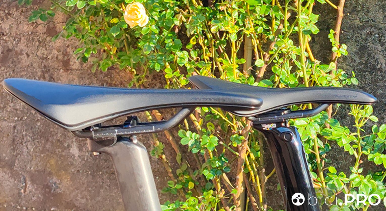 Entrambe le selle offrono un “padding double density”, dove la schiuma che interessa l’appoggio delle ossa ischiatiche è più fermo, rispetto al naso della sella, progressivamente più morbido. Hanno dei “cutout” e sono posizionati in modo ergonomico sulla base di centinaia di rilevazioni “pressure maps” eseguiti durante la fase di ricerca. Antares, rispetto al modello precedente ha una sezione più piatta, per evitare spigoli che possono dar fastidio a utenti più sensibili. E’ stata migliorata la superficie di contatto che aiuta a dissipare la pressione. Il naso della sella è stato allargato per offrire più supporto quando si ha la necessità di pedalare in punta di sella.