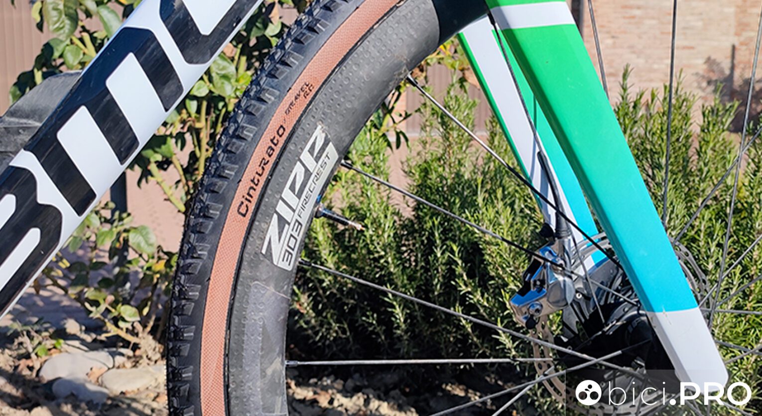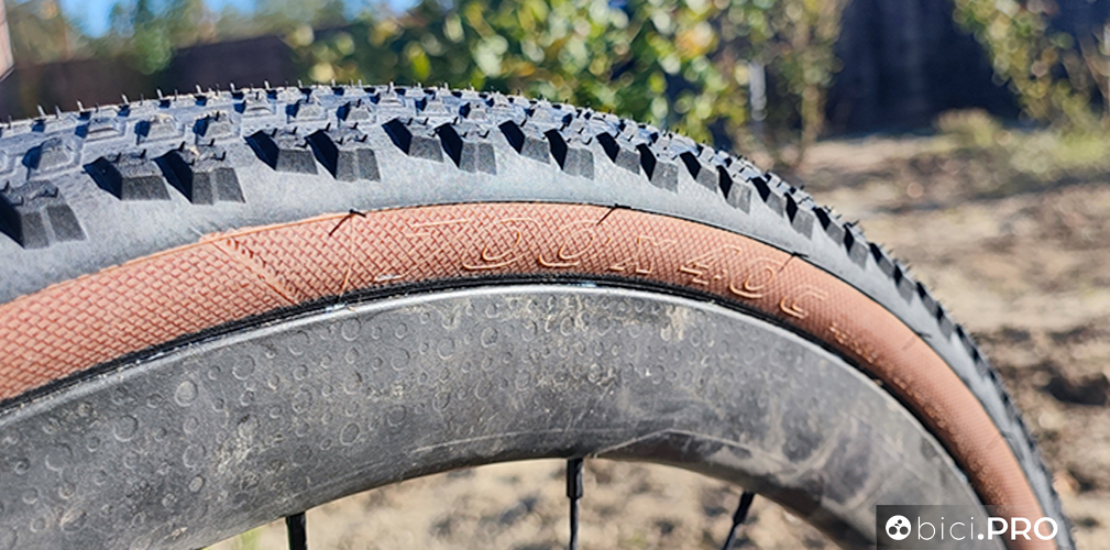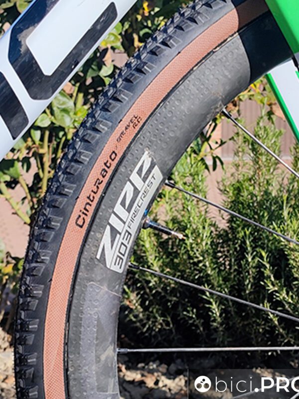 Abbiamo montato il Pirelli Cinturato Gravel RC su una ruota full carbon dal profilo medio, rigida se consideriamo il contesto offroad, con un canale interno da 25 millimetri e hookless. Se consideriamo l’interfaccia pneumatico/ruota, risulta il binomio ottimale, perché una ruota del genere permette di contenere in modo ottimale i lati, senza che lo pneumatico spanci in modo eccessivo.