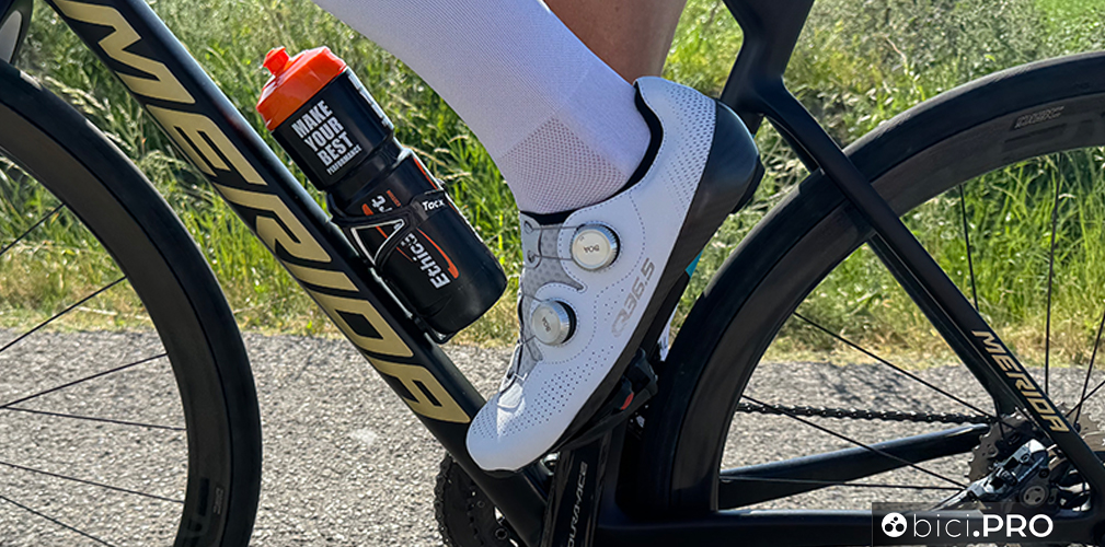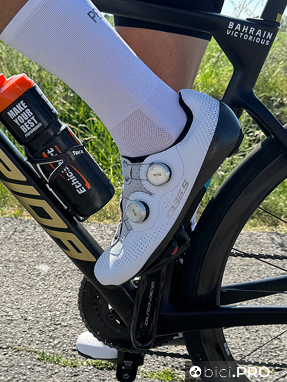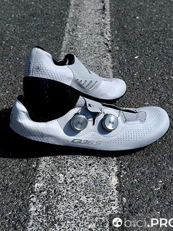 Si parte dalla suola, prodotta nel comprensorio calzaturiero di Montebelluna, in Veneto, dove molte scarpe (di marchi differenti) hanno origine. E poi c’è tutto il know-how di Q36.5, che proprio con le nuove Unique Pro raggiunge l’apice in termini di design, performance, materiali ed un fitting che lascia di stucco. Tornando per un attimo alla suola, questa ha uno stack di soli 4,4 millimetri dal punto di battuta sul pedale, significa il valore più basso che il mercato è in grado di offrire oggi e fa collimare resa tecnica e comfort.