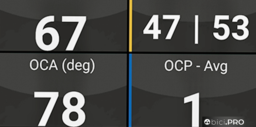 Uno dei grafici più interessanti proposti dalla app, visualizzabile nel corso della ride. Questo è quello che valuta l’angolo della pedalata e l’espressione dell’intera rivoluzione Questa schermata della app Rotor permette di analizzare in tempo reale il bilanciamento e altri fattori della performance In questo caso invece, una sorta di schermata principale con molti più campi a disposizione