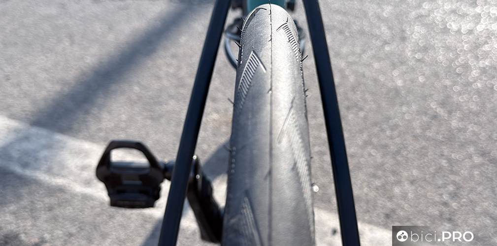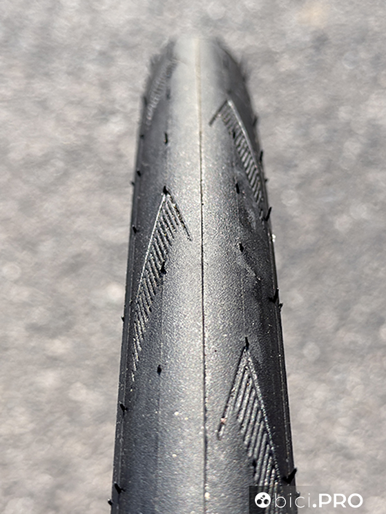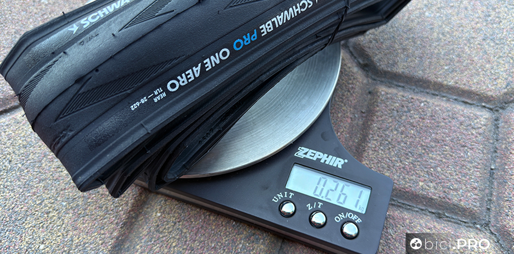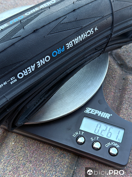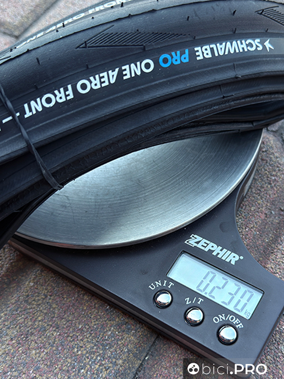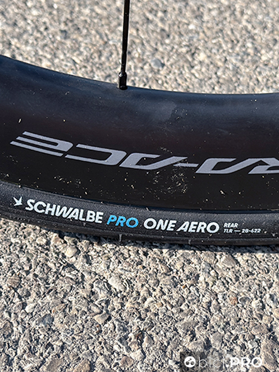 Sono tubeless ready, hanno una sezione di 28 millimetri (ETRTO 28×622) e sono pneumatici pieghevoli. Hanno una mescola Addix Race, quella sviluppata per l’agonismo ai massimi livelli ed una carcassa EPI 127 (127 fili per pollice quadrato, la stessa carcassa avvolge anche il tallone). La versione è Super Race con inserto centrale Super Race Guard, una bandella protettiva dal peso ridotto. Il design del battistrada riprende il classico intaglio Schwalbe. I nuovi Schwalbe Pro One Aero sono differenziati (nella struttura e per quanto concerne la superficie degli intagli) tra anteriore (front) e posteriore (rear), lo si percepisce anche al tatto. Il prezzo di listino recita 79,90 euro (per singolo pneumatico), non poco, ma perfettamente nella media se consideriamo questa categoria ultra performance di strumenti, perché di questo si tratta.