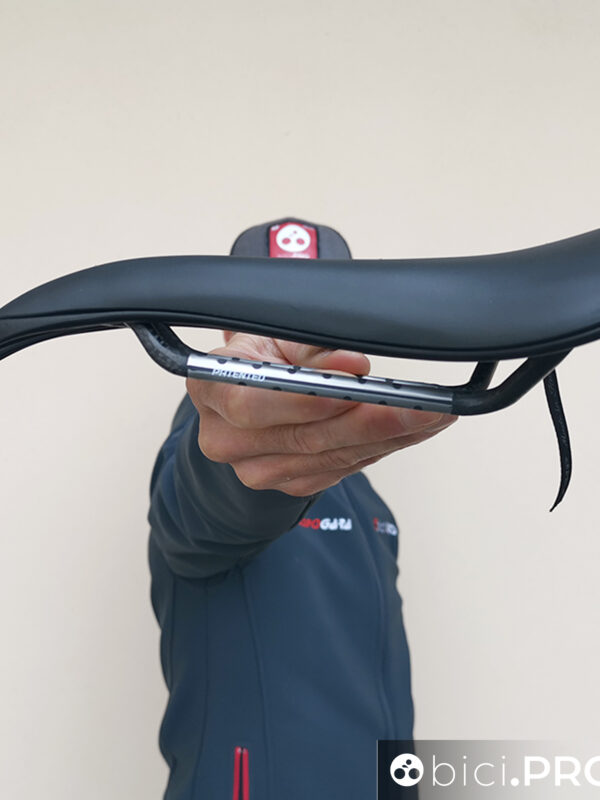 Lateralmente non frena la ricerca della pedalata profonda tramite la coscia e nella zona posteriore il supporto che crea è esponenziale e tanto sfruttabile. Questo accade grazie allo “spoiler” menzionato in precedenza e grazie ad una sella che diventa tutta sfruttabile (ovviamente tranne il becco). E’ doverosa una precisazione: una sella di Selle SMP prevede un montaggio in bolla. E’ nostra abitudine scaricare la punta verso il basso, in modo da sfruttare ancora di più la zona del retrotreno in salita, ricercando un sostegno per i glutei e scaricare l’intera zona lombare.