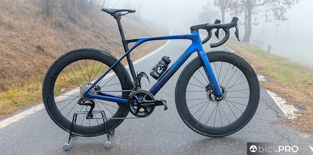 La trasmissione è la Shimano Dura Ace 12v (52-36 e 11-30), la sella è la Fizik Argo Vento R5. Il comparto ruote è rappresentato dalle Lapierre LP42, molto diverse dalle precedenti, con un’altezza di 42 millimetri, cerchio spanciato full carbonio e tubeless ready, senza dimenticare il canale interno da 21. Gli pneumatici sono i Continental GP5000S da 25, già nella versione TR (tubeless). 7,3 chilogrammi rilevati (senza pedali e nella taglia media), per un prezzo di listino pari 7.799 euro.
