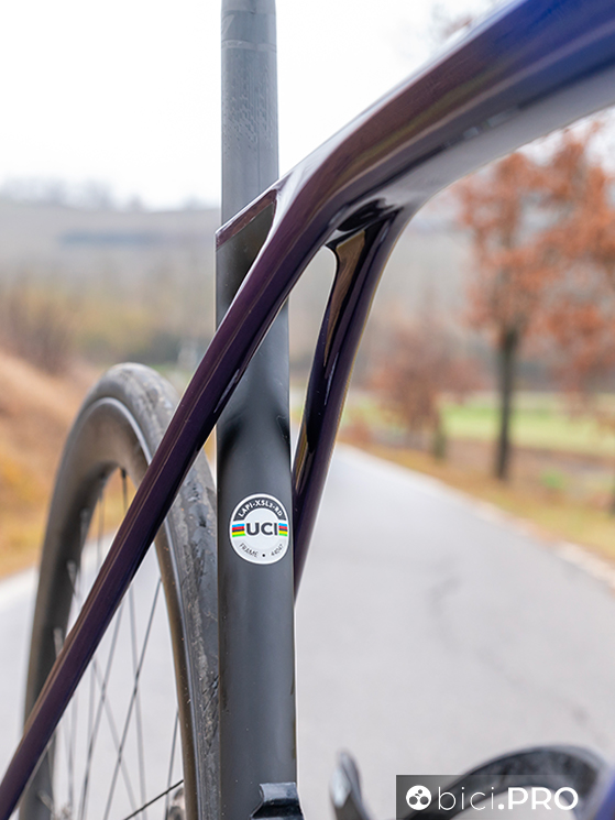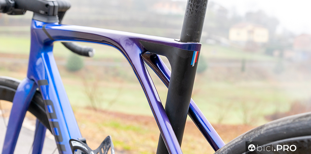 Il marchio di fabbrica è legato ai profilati obliqui che sono separati dal piantone, ma il design complessivo e la sagomatura di tutte le tubazioni sono molto differenti rispetto al passato. Cambiano anche le prestazioni, per una bicicletta che è migliorata ulteriormente nella versatilità e capacità di configurarsi al meglio con differenti tipologie di ruote. E’ sufficientemente comoda, ma è una bici da gara in tutto e per tutto. In discesa all’interno delle sezioni tecniche fa godere delle traiettorie tirate alla corda.