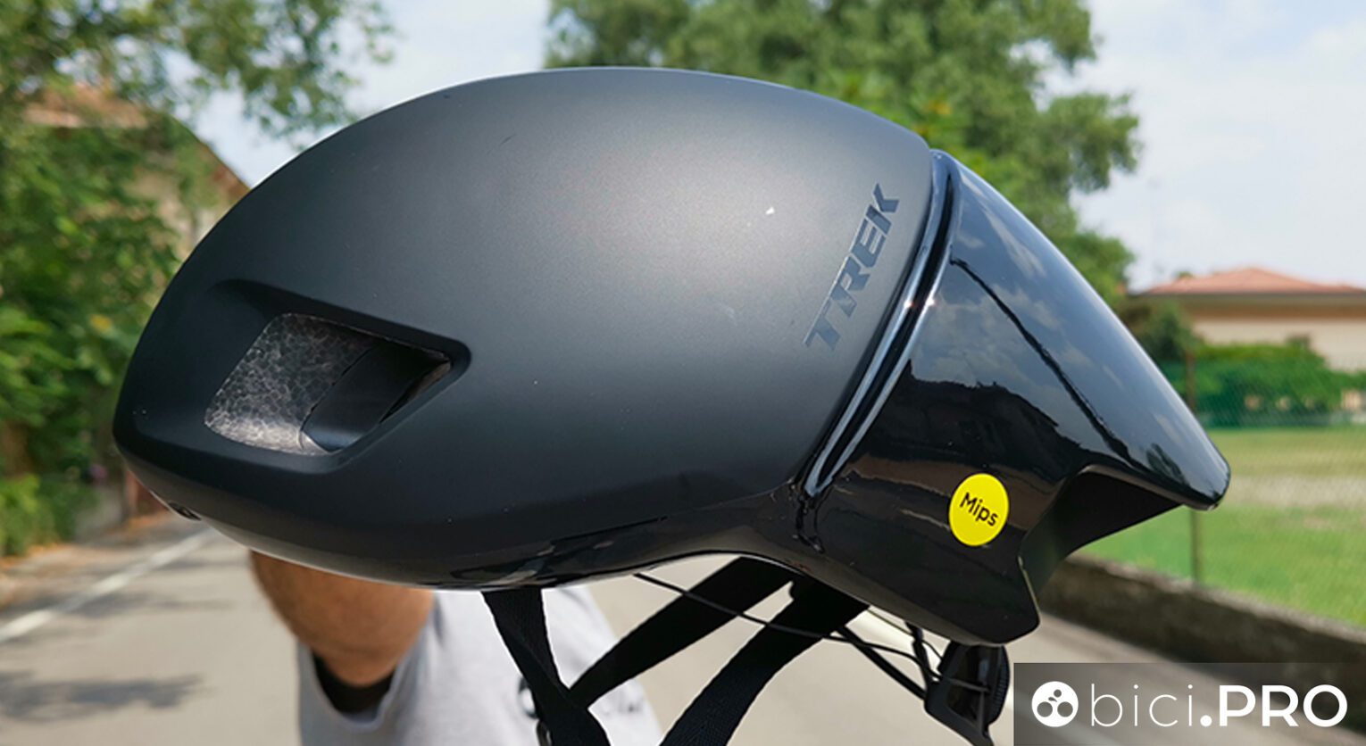 Il Trek Ballista ha una forma che non passa inosservata. Le sezioni mediana e frontale sono molto arrotondate e in un certo senso contrastano con la “coda” che invece è più squadrata ai lati. Quest’ultima è completamente staccata dalla testa è funge come uno spoiler ribassato verso la schiena, con il compito di far si che l’aria che scende dalla testa non vada a schiacciarsi sulla schiena. Al tempo stesso influisce in modo positivo sull’estrazione di calore ed umidità che si formano durante lo sforzo.