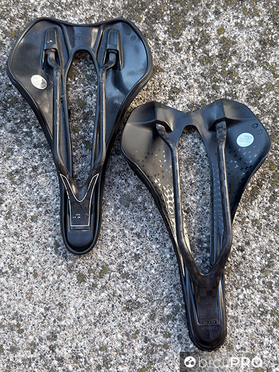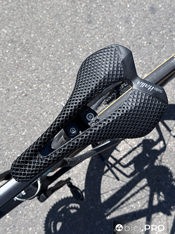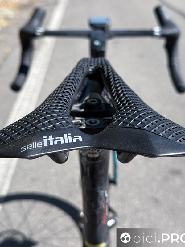 Ai lati è magra e molto scaricata, fattore che influisce in modo positivo sulla profondità della pedalata e libertà interna della coscia. La sezione posteriore non si alza (è dritta), al centro è perfettamente in bolla e la punta tende leggermente verso il basso ed il comfort ne guadagna.