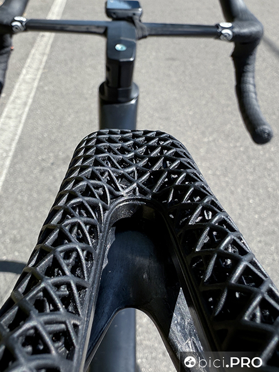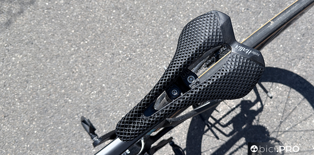 Lo scafo è in carbonio ed è molto rigido, con una copertura in 3D (un blocco unico) che sfrutta la tecnologia Carbon DLS. Il reticolo della copertura è stato completamente cambiato, meno “duro”, più confortevole ed equilibrato, maggiormente progressivo e con le zone a sostegno differenziato. C’è il solito canale Superflow bello abbondante. Non è una sella a buon prezzo, perché 449,90 euro non sono pochi, ma la tecnologia applicata a questo prodotto è tanta.
