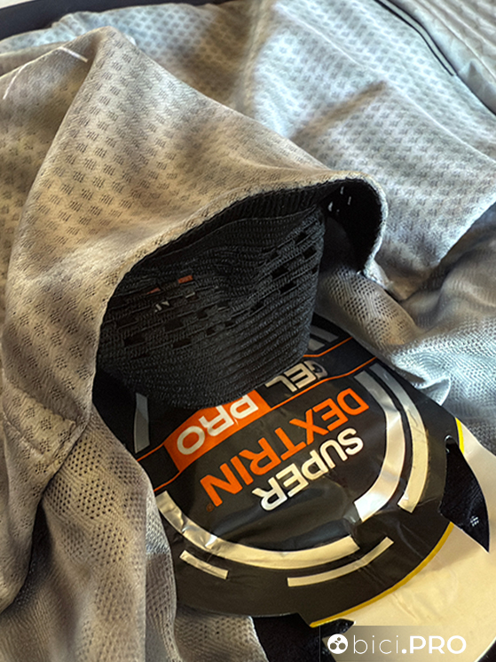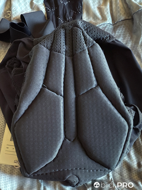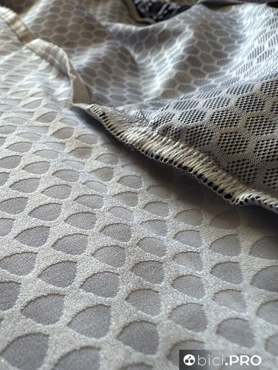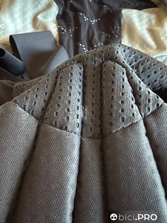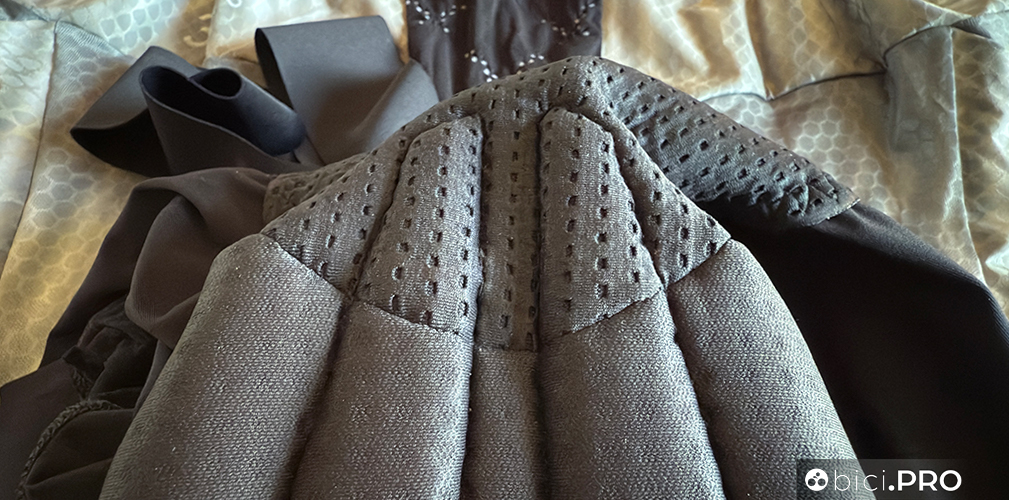Il fondello è sviluppato in collaborazione con Elastic Interface ed è di altissima gamma, in quanto è uno dei primissimi fondelli ottenuti dall’impiego della stampa 3D. Ha zone di densità differenziata e lo stesso fondello è diviso in settori, in modo da adattarsi alla seduta ed al peso del corpo che grava in queste zone. La sezione anteriore è completamente scaricata e funge (anche) da contenitore, senza creare pressioni né davanti, né in tutta la parte inguinale. Il prezzo di listino è di quelli importanti, 330 euro.