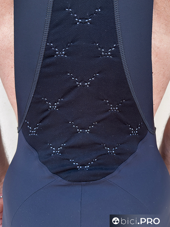 Pur essendo due capi molto tirati ed aderenti non mostrano alcun punto di pressione controproducente e sgradevole anche nel lungo periodo. Ci vengono in mente il fondo manica ed il colletto, il fondo gamba, la fascia addominale e tutta la zona interessata dal fondello. Quest’ultimo offre il giusto mix tra zone di supporto, zone scaricate ed “alleggerite” che si adattano alle forme corporee. Pur avendo qualche cucitura mediana risulta impercettibile anche dopo qualche ora di sella.