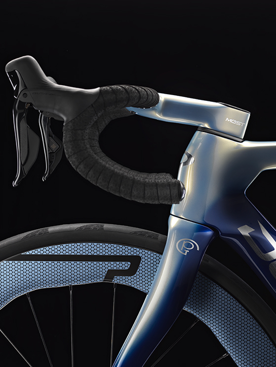 E’ la livrea il valore aggiunto. Scritta e loghi specchiati, una fusione cromatica brillante tra un blu notte, silver e quello che è stato chiamato Borealis Luxter Venice, una sorta di esclusiva Pinarello. Compare per la prima volta il logo GPT, acronimo di Giovanni Pinarello Treviso, celebrando così il fondatore dell’azienda trevigiana.
