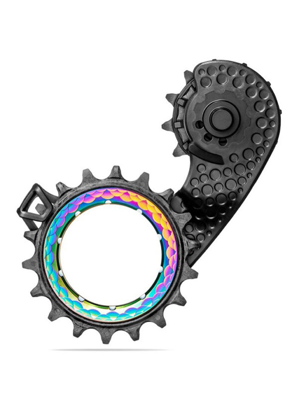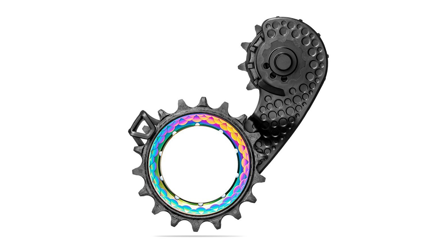 Le pulegge più comuni sono realizzate in polimero e in alluminio, ma presentano alcune imperfezioni come una rumorosità amplificata, dato che il materiale in questione irradia il suono più di qualsiasi polimero, rendendole rumorose. Uno dei principali obiettivi che si è posta AbsoluteBLACK infatti è quello di introdurre una versione innovativa di pullegge in carbonio con cuscinetti in ceramica, che siano in grado di ridurre il livello sonoro di 12-14 dB rispetto alle media. La gabbia in questo modo diventa molto più silenziosa di circa il 60 per cento. Tutto questo è possibile anche grazie a una soluzione in attesa di brevetto che prevede speciali fasce sospese in gomma xring, il cui compito è quello di diminuire l’attrito della catena sui denti della puleggia, eliminando quindi il rumore di innesto, che è il più grande contributore al rumore complessivo della trasmissione.
