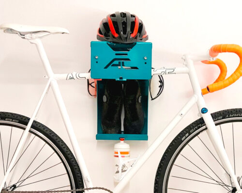 Oltre alla bici, il Teen Strék è un elemento d’arredamento ideale per posizionare anche tutti gli accessori che un ciclista indossa e utilizza per le proprie uscite in sella.