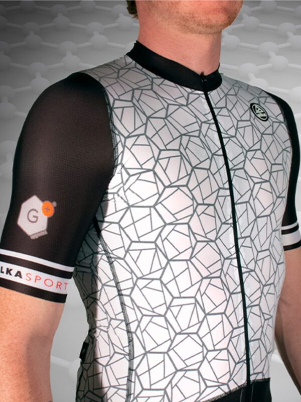 La tecnologia del tessuto EvoGraph Alka permette un’ideale distribuzione del calore corporeo, per concentrare tutte le energie nell’ottenere la massima performance. La nuova maglia estiva Jet Graphene della linea Alka Evolution 2.0 è realizzata con tessuto EvoGraph sviluppato coniugando la tecnologia Kinetech “Ergogenic Fabrics” di Tessitura Taiana con la tecnologia G + Graphene di Directa Plus per garantire il risultato ottimale ad ogni uscita in sella.