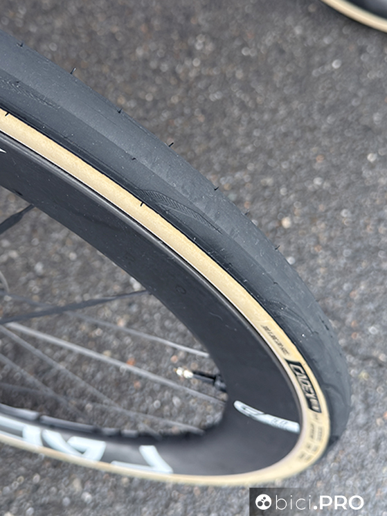 Prima di tutto la forma, con pareti laterali alte e una forma ovale. Nel complesso è una soluzione voluta, per aumentare l’efficienza aerodinamica senza sacrificare la tenuta, la scorrevolezza, il grip. Ovviamente la carcassa in cotone, che aumenta comfort e maneggevolezza. La mescola RR-S2 che ha permesso di ridurre la resistenza al rotolamento del 30%, rispetto alla versione precedente RR-A.